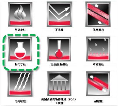 特氟龍材質幾乎對所有的化學藥品或者溶劑具有極不活躍性,因而起到了耐腐蝕性。在化學藥品輸送應用方面有極好的效果。