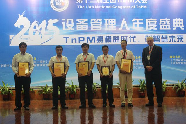 緊隨其后進行的是TnPM特別貢獻獎頒獎儀式,TnPM的茁壯成長離不開企業和合作伙伴一直以來對于TnPM體系的信賴和支持,因此TnPM特備貢獻獎顧名思義就是為了表彰在設備管理事業上和TnPM體系發展建設上有特別貢獻的企業而特別設立的獎項;珠海經濟特區順益發展有限公司、廣東燕京啤酒有限公司、四川煙草工業有限責任公司、招金礦業股份有限公司分別獲得此殊榮。澳洲TPM中心負責人,CTPM Australia 總裁 Ross Kennedy先生為獲獎企業頒發獎牌和證書。